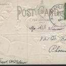 For a Jolly Christmas Postcard. Front has Red Bow and Bells with Holly. Back is postmarked 1913. Postcard is in good condition, wear at edges