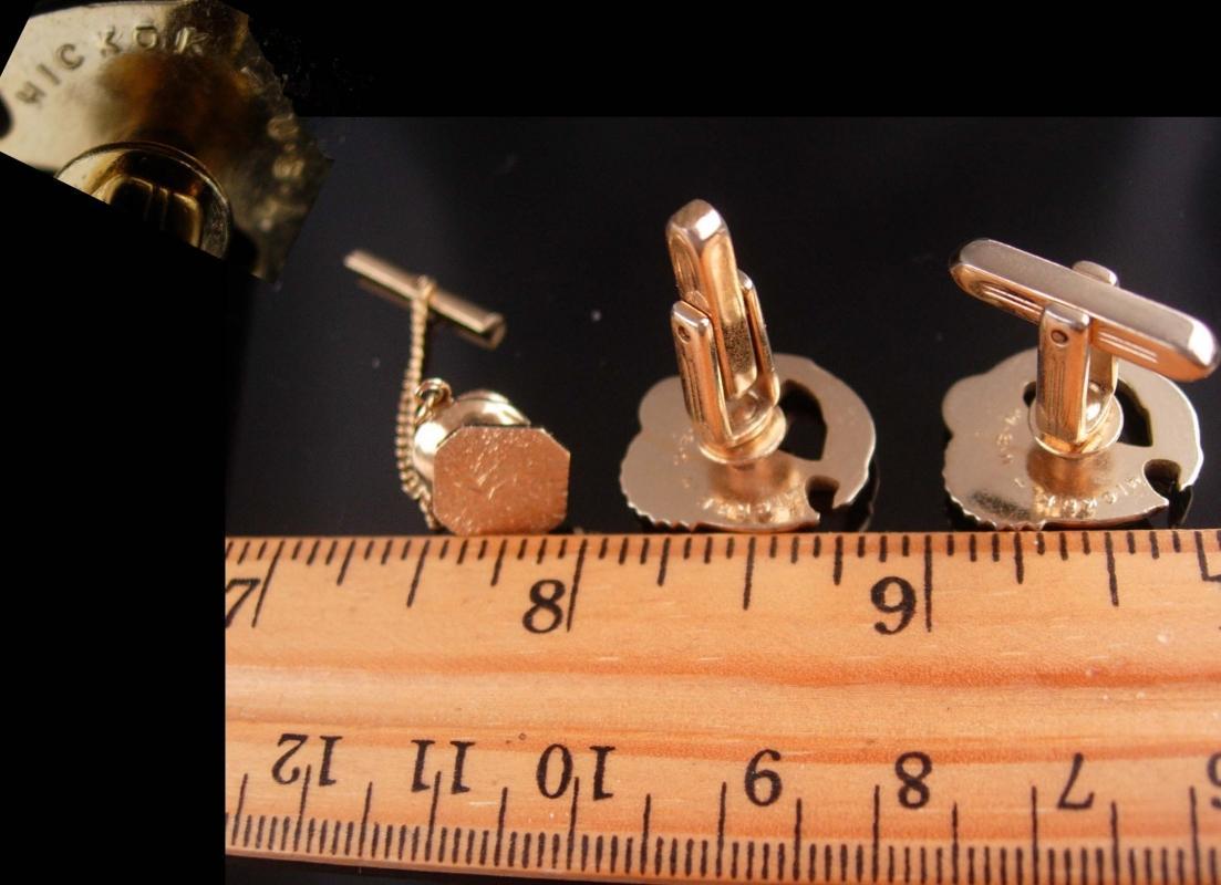 These are a very Handsome pair of Jumping Fish Golden Cufflinks. We included a Goldtone Tie Tac for Free. They all are in good vintage condition, medium weight and well made. These will be perfect for that fisherman, Father's Day or Birthday present. Signed Hickok USA for High Quality. cl Apr6