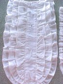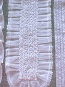 Offering these three vintage ladies jabots including one 9 1/2 x 4 inch white cotton with lace trim and center lace embroidery; one 14 x 7 inch white cotton ruffled; and one 14 1/4 x 7 inch white cotton with french open stitching and tatted lace flowers. All are in very good condition, no holes or stains. Freshly cleaned. Great for display - especially framed!