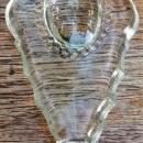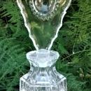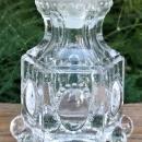 "Beaded Medallion" pattern perfume/cologne bottle with stopper, made by L.E. Smith Glass from 1941-55. Apparently they made direct copies of ones made in Czechoslovakia. Clear glass, measures 7"h. Some minor chipping to stopper. Sold as is. Inglenook Antiques...Established 1989.