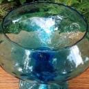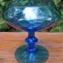 Vintage Mid-Century Modern diamond optic blown glass pedestal vase, or compote, in peacock blue. Circa 1950s-60s. Made in Empoli, Italy, measures 6"h x 5.5"d. Cupped rim. Great condition, with no chips or cracks. Does have a few bubbles in the glass on the foot as shown. Inglenook Antiques...Established 1989.