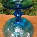 Vintage MCM Empoli Vase Peacock Blue Diamond Optic