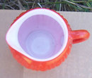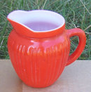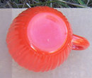 Vintage Orange Fired on Glass Creamer White Inside. No Marks. Creamer is 5" high and 2 1/2" across. Very Good condition.