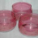 Princess House 3 stacking iridescent cranberry pink candy with lid . It is acid etched Heritage pattern. There is a gold shimmer to the color.