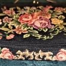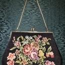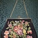 Vintage Purse Petit Point Black/MC Roses/Flowers 1930s