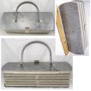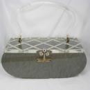 Vintage silver gray marbelized lucite purse with carved top Grey retro design