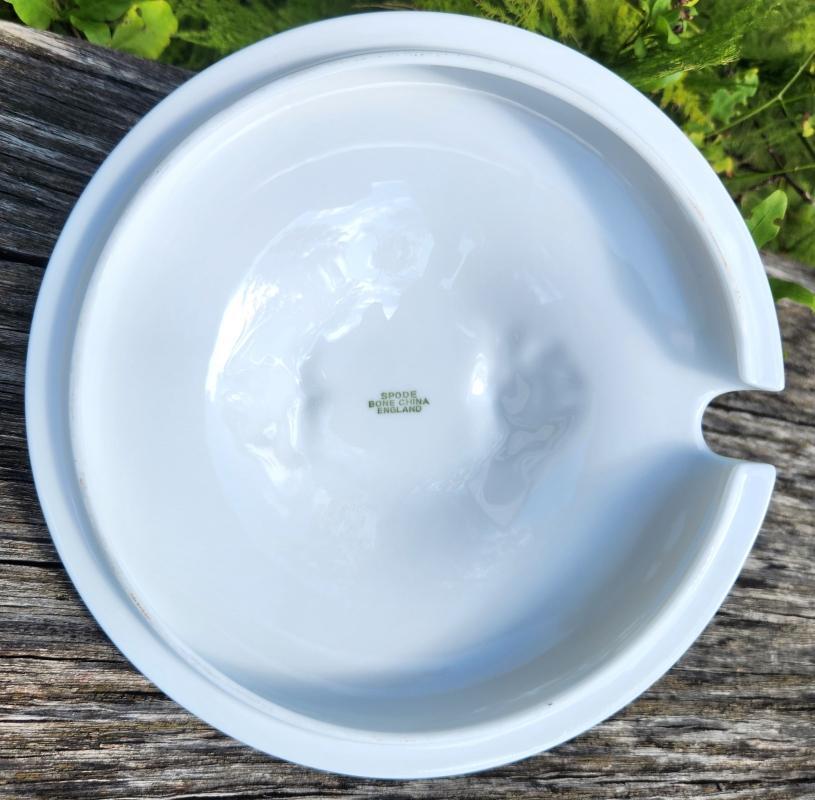 Vintage Spode Tureen Lid White Bone China Leaf/Vine Handle