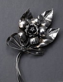 VINTAGE STERLING SILVER AUCELLO FLORAL PIN c. 1920. This lovely sterling silver pin/brooch has very detailed and intricate flowers, leaves and ribbon in the form of a floral bouquet. The craftsmanship is truly wonderful It measures 3 5/8" x 2". This lovely early 20th century brooch is in excellent condition.