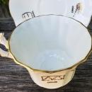 Vintage Taylor & Kent "Cup of Fortune" bone china cup and saucer, made in England. Designed to revive the art and fun of tasseography, or "tea-leaf reading". Made in the 1960s. White with metallic gold symbols and trim. This one is #3. Cup measures 3"h at handle, saucer 5.75"d. Promoted through Red Rose Tea. Nice condition with no chips or cracks. See our other listings for #1 & #2. Inglenook Antiques...Established 1989.
