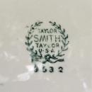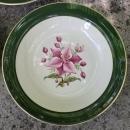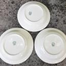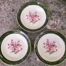 "Appalachian Heirloom/ Bonnie" flat-rimmed soup bowl set of 3, made by Taylor, Smith & Taylor, USA. Circa 1950's-60's. Measure 7.75"d. Wide, dark green border with 22K gold trim. No chips or cracks, very little wear. Sold as a set of 3 Inglenook Antiques...Established 1989.