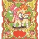 Vintage Valentine Card with Girl and Boy Sitting on Fence