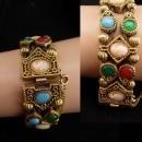 Vintage Victorian slide bracelet / Double row bracelet / cameo bracelet / Gold charm bracelet