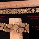 This vintage heavy victorian slide bracelet has 2 rows that move on chains. There are six real cameos that grace this vintage bracelet . It measures 7 1/2" long when closed. The gold color has lightened over time and the back has a fancy design with gold wear.