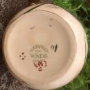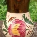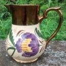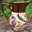 Wade Harvest Ware jug with hand-painted peonies and copper luster trim. Made between 1948-52, though it looks like it was made 100 years earlier. "Dandy" shape 18 ounce pitcher measures 5.75"h. Piece has allover crazing of the glaze, but no chips or cracks to the pottery. Inglenook Antiques...Established 1989.