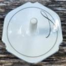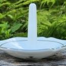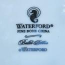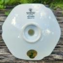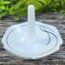 Bone china ring holder in the "Ballet Ribbon" pattern, made by Waterford of Ireland. Platinum trim. Measures 3.75"d x 3"h. Dates from 2005-2018; foil label still intact. No chips or cracks, very good condition. Inglenook Antiques...Established 1989.