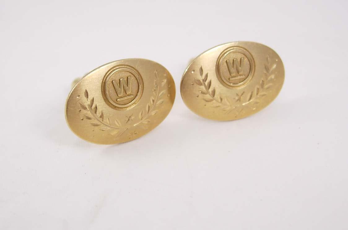 This vintage pair of WestingHouse Electric Corp. elegantly designed gold 30 year service cufflinks would be perfect for most any occasion. They are in very good condition and would be so nice as a gift or to wear on that special occasion including a night out on the town. They are light weight,very good quality and well made. Perfect for a wedding or anniversary or a gift to a friend or boss. Add that perfect touch of vintage to a classic suit or tux. We don’t polish these previously owned well loved pieces so we can keep the original patina. We try and photograph all of the pieces next to a ruler so you can see the actual size. If you would like to see our other items in our store please click here : https://www.etsy.com/shop/NeatstuffAntiques Cl mj 15