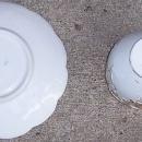 Vintage White Cup and Saucer. Cup and Saucer have Gold Grape Vines and Grape Bunches. Cup is 2 1/2" high and 2 3/4" Across, Saucer is 5" Across. Cup and saucer are in good condition, gold does have some wear.