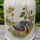 German beer mug/stein decorated with decal of grouse game birds. Marked for Wick Works AG of Grenzhausen, West Germany. 1960+. Holds .5 liter, 5"h, no lid (and no evidence of having had one). Very good condition, with no chips or cracks. See our other listings for similar mugs. Inglenook Antiques...Established 1989.