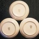 Bavarian dish/plate set with center designs of historic cityscapes and heraldic shields, representing Wiesbaden, Frankfurt and Nurnburg, Germany. Metallic gold trim. Each measures 5.75"d x 0.875"h. Marked by the Winterling porcelain factory, circa 1970s. Nice condition with no chips or cracks. Sold as a set of 3. Inglenook Antiques...Established 1989.