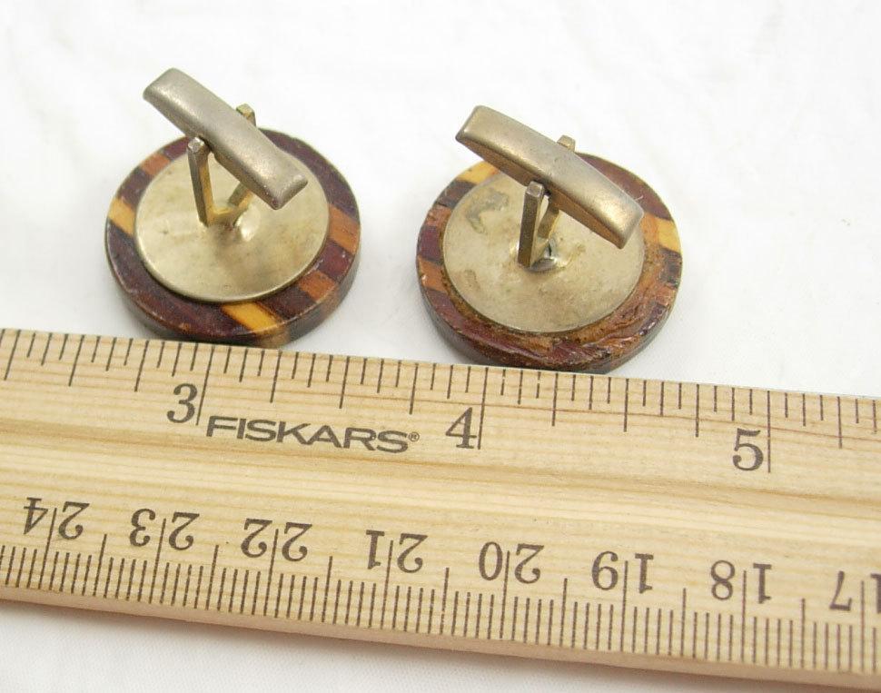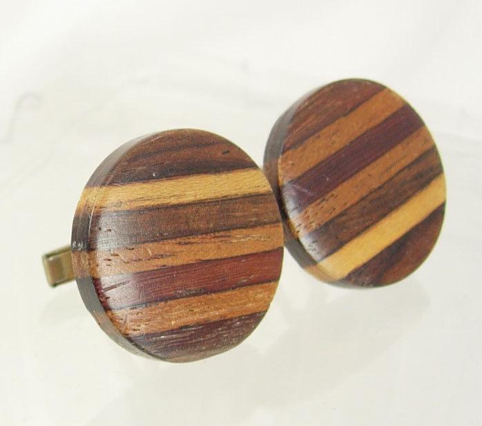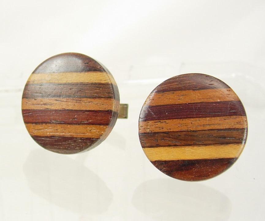Vintage Wood cuff links Marquetry Inlay Cufflinks Large Round mens accessory handmade jewelry