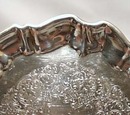 Wallace Avalon Silverplate #525 Tray. What a wonderful sized 3 footed tray, just perfect for caviar or any candy or relish. Flower shaped with intricate pressed design with 3 feet on the bottom. There is very light scratching, but is still very nice. 6" x 3/4". Shipping will be 3.50 if in the USA