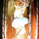 The blown glass air balloon is in very good condition with a small paper lithograph angel holding on to the base. Wire wrap is 100 percent intact. Color may be somewhat sun faded but this in no way detracts from the quaint and unique design. No cracks, chips or additions. Buyer pays S.+ H. "We accept Visa, MasterCard, Discover and American Express via Paypal, or payment with a money order or check. We will ship within 24 hours if paid with a money order or Paypal. Payment with a check will delay shipping."