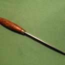 Artifact _WW1 Erik Frost Mora Sweden 11.5 Inch Long FIGHTING KNIFE Swedish Antique Steel. SHARP!!! cuts paper ; ANOTHER TRUE TEST OF SHARP EDGE is Photo of Mora Knife sitting on edge of finger nail AND DOES NOT SLIDE OFF...EQUALS TRUE TEST OF SHARP !!! view pic. Due to being so old, may require sharpening with a wet stone + light sewing machine oil. Closest to handle is a deliberate knotch on blade , designed that way....