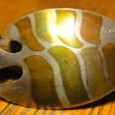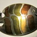 THE PIN HAS COPPER & BRASS, ACCENTS.