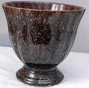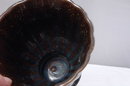 Deco Brush Footed Pottery Bowl Brown Glaze with Speckles