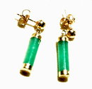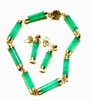This lovely set is of genuine Chrysoprase cylinders set in 14K links. The bracelet and the earrings are marked 14k and the gemstones test positive for being Chrysoprase.