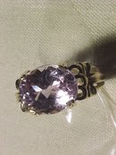 Lovely 14K Ring with a huge faceted lavander amethyst center stone. The ring is a size 5 3/4". The stone is 12cm long x 8 cm wide. It is cut in such expert manner that it captures light and sparkles.