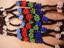 Before hippies adopted the flower movement, this vintage necklace was already born and worn. It has thousands of tiny glass czech seed beads that form delicate little florettes that are grouped in clusters. SPaced with strands of black beads it forms a beautiful pattern. This is all hand done ( I could not even imagine the time it took to make this). The width is 2" and the length is 20". You can wear the knotted clasp in the back, on the side or even in the front. IT has periwinkle, black, red, green, yellow, cobalt and burgandy so you can wear this with most anything. A really nice quality piece too! VintageSparkles offers Layaway on all our pieces regardless of which site it comes from. Please remember that vintage & antique items are not mint, nor are they perfect but they sure are full of old history and charm. Please use photos to make your decisions and read our policies prior to buying so you can have an excellent experience with us.