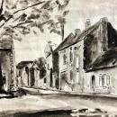 French India ink wash painting on paper