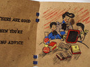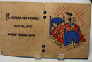 1944 Hallmark 14 page Mothers Day card. This is unused, paper is like brown paper bag and printing reminds me of crayons, but is printed. This is dated 1944, is 14 pages and has 2 plastic ring binders to hold it together. They are a little smashed but it still opens well. There is a little discoloration on lower left corner and some of the brown spots on the paper must be acidic and have spread and weakened the paper in spots (the worst one is pictured by mothers head when showing children homework help on chalkboard) It is in very good condition, and the problems with the paper would be in any of this style you could find. 5 x 6"" Shipping is 1.00 if in the USA