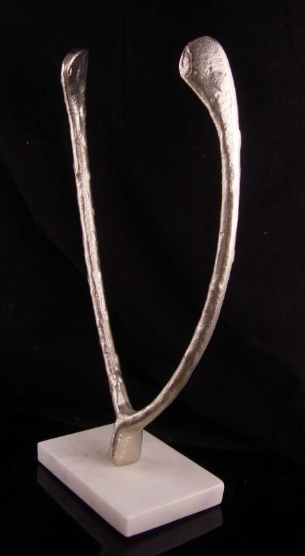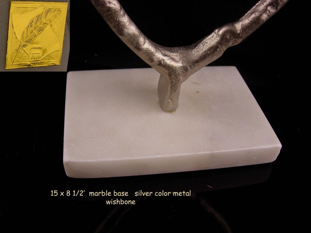 1950's Lucky wishbone 15" sculpture - Vintage mid century modern statue - Good luck Gift - marble base - metal art sculpture