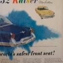 1952 Manhattan Kaiser Fraizer car, April 21, 1952. 2 page ad Magazine tear sheet picture is taken through plastic and may show wrinkles or crookedness that is not in the ad. This original magazine tear sheet measures 10 inches wide by 13 1/4 inches tall.