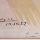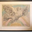 This is an artist proof lithograph on woven paper of Colombe Volant à l'Arc-en-Ciel ( Flying Dove with a Rainbow ) by Pablo Picasso, from the numbered edition of 200 (238 including proofs) of 1952. Literature: Bloch 712, Mourlot 214. Signed in the stone "Picasso 10.10.52" and signed in pencil "Picasso" and "E.A." for " epreuve d'artist ". "ARCHES" blind stamp along bottom edge. Purchased in its current glass-covered and matted frame in the 1970s from a dealer in Paris. Frame measures 29.25" x 39.25". Condition is very good. (Please excuse the reflections off the frame's glass.) We have not examined the print outside of its frame. This lithograph are being sold here on behalf of a collector on the Upper West Side in Manhattan (New York, NY) who purchased the piece in Paris in the early 1970s.