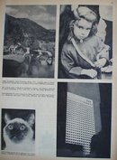 1959 Photo Contest Winners. This black and white two page April, 1960 article shows pictures of photo contest winners. Hi by Harry Eisenberg, Arri, Burrito by Allen Weitzman, skyscraper by Harry Eisenberg, Cats Eyes by Brian Gordon, Intruder by John Gould, Rusting History by Mike O Connell and Venetian Blind Cord and Cigarette by Harry Eisenberg. Magazine tear sheet picture is taken through plastic and may show wrinkles or crookedness that is not in the ad. This original magazine tear sheet measures 9 1/2 inches wide by 13 inches tall.