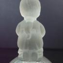 Domed bell is made out of thick clear glass. The praying boy is frosted glass. Bell is 6 1/2" tall and 3 1/4" in diameter. Bell is in great condition.