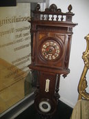 19th Century French Carved Walnut Wall Clock with Barometer and Thermometer