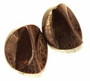 2 very cool Art Deco Bakelite Coat Buttons. They have an etched swirly ring pattern on the surface. The color is actually darker like cola but I had to lighten the picture in order to show the pattern. They are slightly oval in shape with a raised thick center. They measures 1 7/16th" x 1 1/2" and are 1/2 thick at the thickest part.