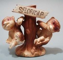 2 little monkeys on tree s & p set. Florida souvineer monkeys hanging on a tree s & p set. These monkeys will sit by themselves as well as hang for use. 2 x 2 1/2" and tree is aprox 4 1/2 x 2 1/2"