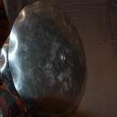The condition is good and there is one small ding near the egde on the bottom plate. It is like a nail pushed it in. There is a screw at the bottom so that it appears to be able to break it down for storage.