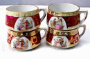 4 Demitasse Cup Romantic Colonial Scenes with Gold Gilding