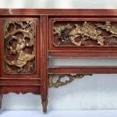 Famille Rose motif, antique authentic Chinese bed panel (length: 1880mm / 74 inches), hand carved and painted. Red and gilt, stunning piece. Circa 1930-40. This piece of asian antique has been carefully selected and observe before going in the web.