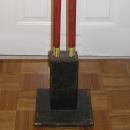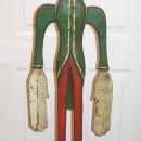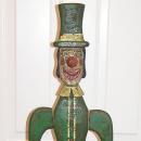 This very tall clown whirligig has its original painted finish and measures 58" (4' 10") high, 10" wide and deep at the base, and has arms that are 21" long. Structurally sound. Arms move freely. ( ngisande folk art )