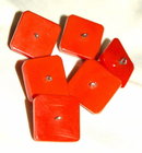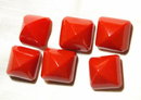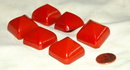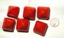 6 huge cherry red bakelite buttons. The color is darker than what it show in the pictures. There are 4 paneled pyramid shape buttons. At the base they are 1" squared and 3/4" high from base to point. There is alot of bakelite here to use as is or carve into something else. The condition on all of them is mint.