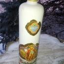 White glazed crock German Light Rhine Wine bottle with Beameister Liebfraumitch Reichsgraf Von Hochberg Weinkellerei gmbh Wehlen Mosel colorful paper advertising label. James B Beam Import Product New York 1970 date.