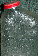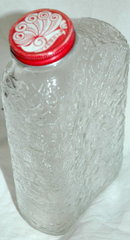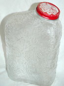 Anchor Glass Co. Refrigerator Water Container/Flask. It has a textured design in the pressed glass. The metal lid is original.
