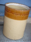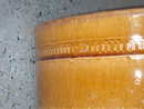 Antique CROCK SIZE 12 Inch HIGH x 10 Inch Wide x 10 Inches Deep ~ CROCK ~ with UNUSUAL GOLDEN BROWN RIBBED Marking Around Top Outer Edge __Due to Being Antique __as found __ Thought to be Early Canadian Crock